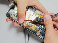 Work a plastic opening pick around the perimeter of the device to separate the rear case from the display assembly.