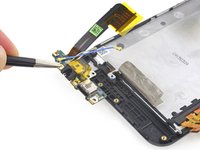 We want to get a look at the M9's Highly Touted Camera. After one last connector, a few more screws, and some adhesive, the daughterboard is finally free.