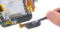 We tweeze out the I/O board, along with the attached 3.5 mm audio jack, microphone, and micro-USB port.
