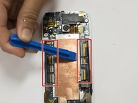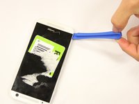 Pull back the ZIF and ribbon connectors and place the plastic opening tool into the indentation between the battery and the frame of the phone. Continue to do this around each side of the battery by gently prying.