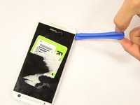 Once the top of the phone is warm, use a plastic spudger to pry the top left corner up.