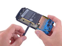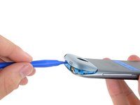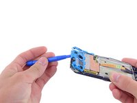 Using a plastic opening tool, lift the turquoise case from the end near the headphone jack.