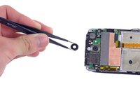 Using tweezers, remove the adhesive tape around the headphone jack.