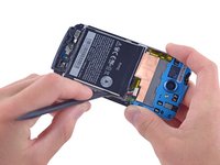 Switching to the flat end of the spudger, work your way underneath the battery and peel it away from the adhesive.