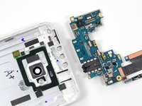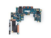 There's a lot going on with this board—it's a host to the front- and rear-facing cameras, headphone jack, ambient light sensor, volume switches, and several spring contacts.
