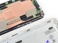 The back of the One is covered in a sea of copper tape and ribbon cables, and only after a diligent search are we able to locate the battery connector—although no clear path to the battery itself.