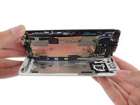Our diligent spudgering appears to have permanently mangled the plastic bezel surrounding the aluminum case. It's possible that prying at a snail's pace while applying heat could minimize this damage, but we're not too hopeful. This phone was not made with open-ability in mind.