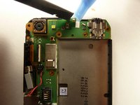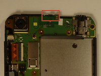 Place your phone on its side so that you can gently pull up on the motherboard to expose its last connector.