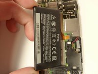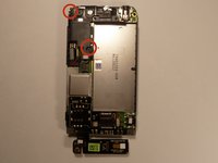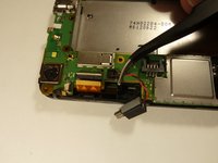 Using the tweezers, pull up on the connecting wires detaching the vibrator from the motherboard.