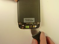Gently and slowly pull the screen out from the front of the phone, while feeding the OEM reader contact through the opening.