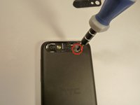 Remove the two 3.0 mm Phillips #0 screws, that are securing the camera lens.