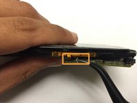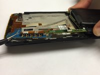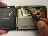 You can now disconnect the flex cable holding the PCB board place. Gently open the gates using tweezers or a plastic opening tool and use tweezers to slide the flex cable out.