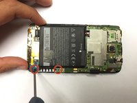 Disconnect the volume flex cable by opening the gate and then sliding the cable out using tweezers.