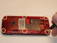 Using a Torx T4 screwdriver, remove the six screws from the six spots shown in the photo.