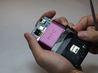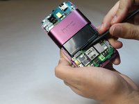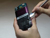 Using a metal spudger, pry up the plastic piece covering the motherboard, and remove the sticker.