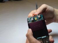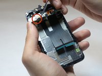 Using tweezers, lift the secondary motherboard from the base of the phone.