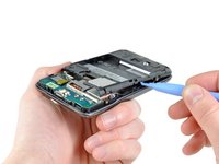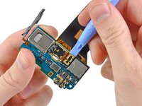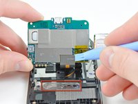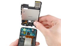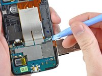 • We used a plastic opening tool to pry the MicroSDHC and SIM card slots off the EMI shield.