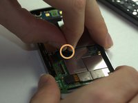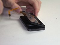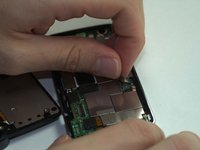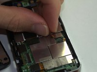Remove the keyboard ribbon from the motherboard. To do this, simply grasp the ribbon at its base and pry it up at an angle. The ribbon has a metal end that is easily removed from the motherboard.
