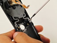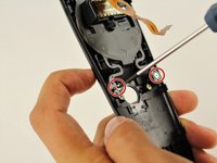 Use the T5 Torx head screwdriver to remove the two silver 4.2mm screws from the rear plastic cover of the menu button.