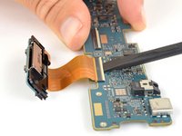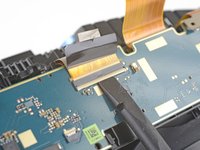 Use the flat end of a spudger to flip up the locking flap securing the interconnect cable ZIF connector.