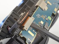 Use the point of a spudger to flip up the small locking flap securing the left camera cable ZIF connector.
