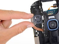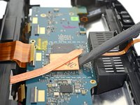 Use the point of a spudger to flip up the small locking flap securing the left camera cable ZIF connector.
