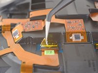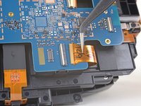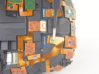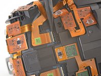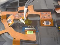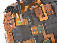 Use the pointed end of a spudger to flip up the small locking flap on one of the sensor array ZIF connectors.