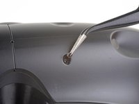 Use tweezers to remove the small stickers over the four screws securing the outer shell.