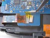 Use a pair of tweezers to peel back the plastic covering the eyepiece midframe cable socket.