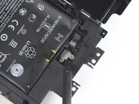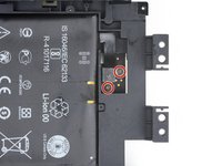 Use a Phillips screwdriver to remove the two 2.3 mm screws securing the battery cable to the back of the motherboard.