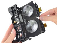 We get our greedy hands on one of the lens/display assemblies and carefully thread the display cable out.