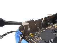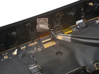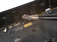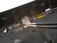 Use tweezers to peel off the black tape covering the right tracking camera ZIF connector.