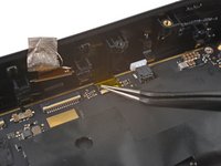 Use tweezers to peel off the yellow tape covering the microphone ZIF cable connector.