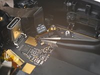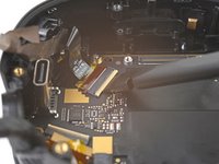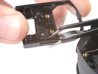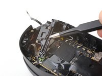 Use tweezers to peel off the black tape covering the left tracking camera ZIF connector.