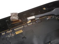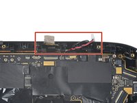 Use tweezers to pull the pass-through camera cable connector out of its slot in the motherboard.