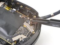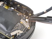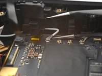 Use one arm of your tweezers to pry up and disconnect the bottom left antenna cable.