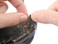 Use tweezers to pull the left tracking camera cable connector out of its slot in the motherboard.