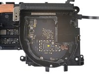 Use tweezers to pull the left tracking camera cable connector out of its slot in the motherboard.