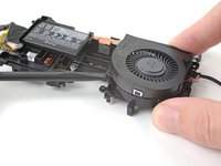 Slide the spudger under the top of the fan to separate the top adhesive.