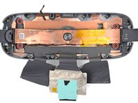 Use tweezers or your fingers to peel the conductive tape away from the front metal battery enclosure.