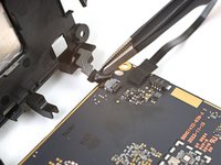 Use tweezers to peel off the black tape covering the left tracking camera ZIF connector.