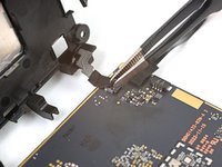 Use tweezers to pull the left screw bracket of its post in the frame.