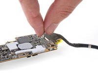 Peel off the yellow tape at the top left corner of the motherboard covering the motion sensor cable ZIF connector.