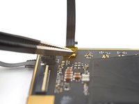 Use tweezers to peel off the yellow tape covering the microphone ZIF cable connector.