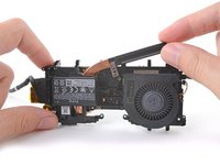 Pull the battery cradle away from the right temple slot to disconnect it.