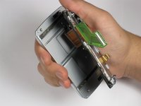 If the motherboard is not easily removed by pulling, then lift one side of the motherboard until you can see the attached cable. Then use the plastic opening tool to detach the cable from the motherboard.