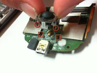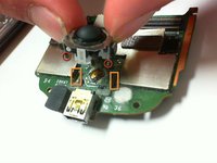 Use a precision flathead screwdriver to dislodge the prongs from the circuit board and push the prongs through the slots. The trackball should detach from the circuit board.