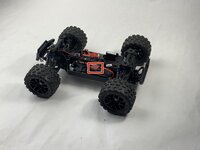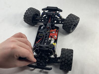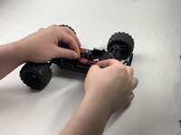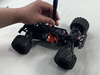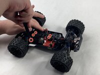 Remove the 4 clips holding down the hard plastic shell of the RC car. Do this by pinching them with your thumb and index finger and pulling away.