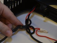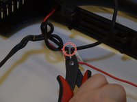 Cut zip tie holding the power cable together using handheld wire cutters.