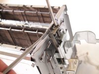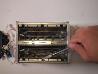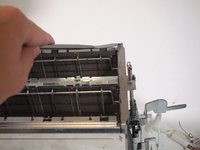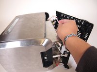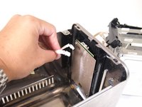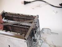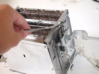 Using your metal spudger, unfold the metal tabs holding the bread-holding trays in place.
